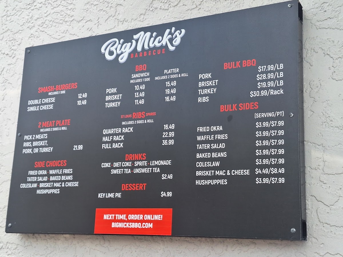 Big Nick's BBQ - Fort Myers, FL Menu